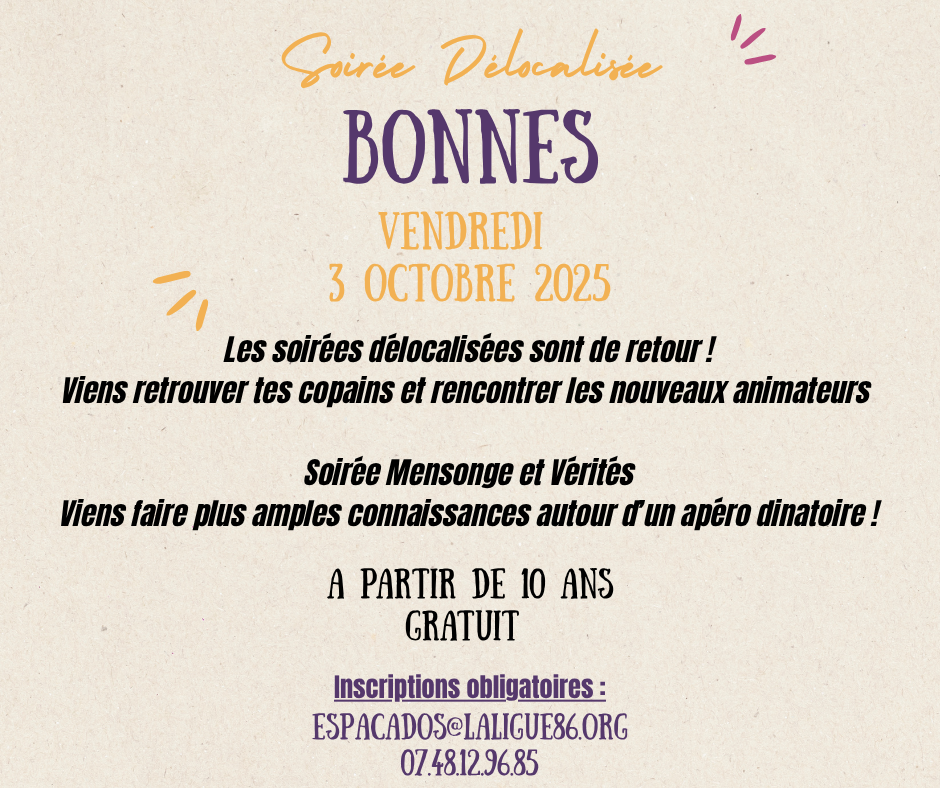 Inscriptions Obligatoires par mail : espacados@laligue86.org