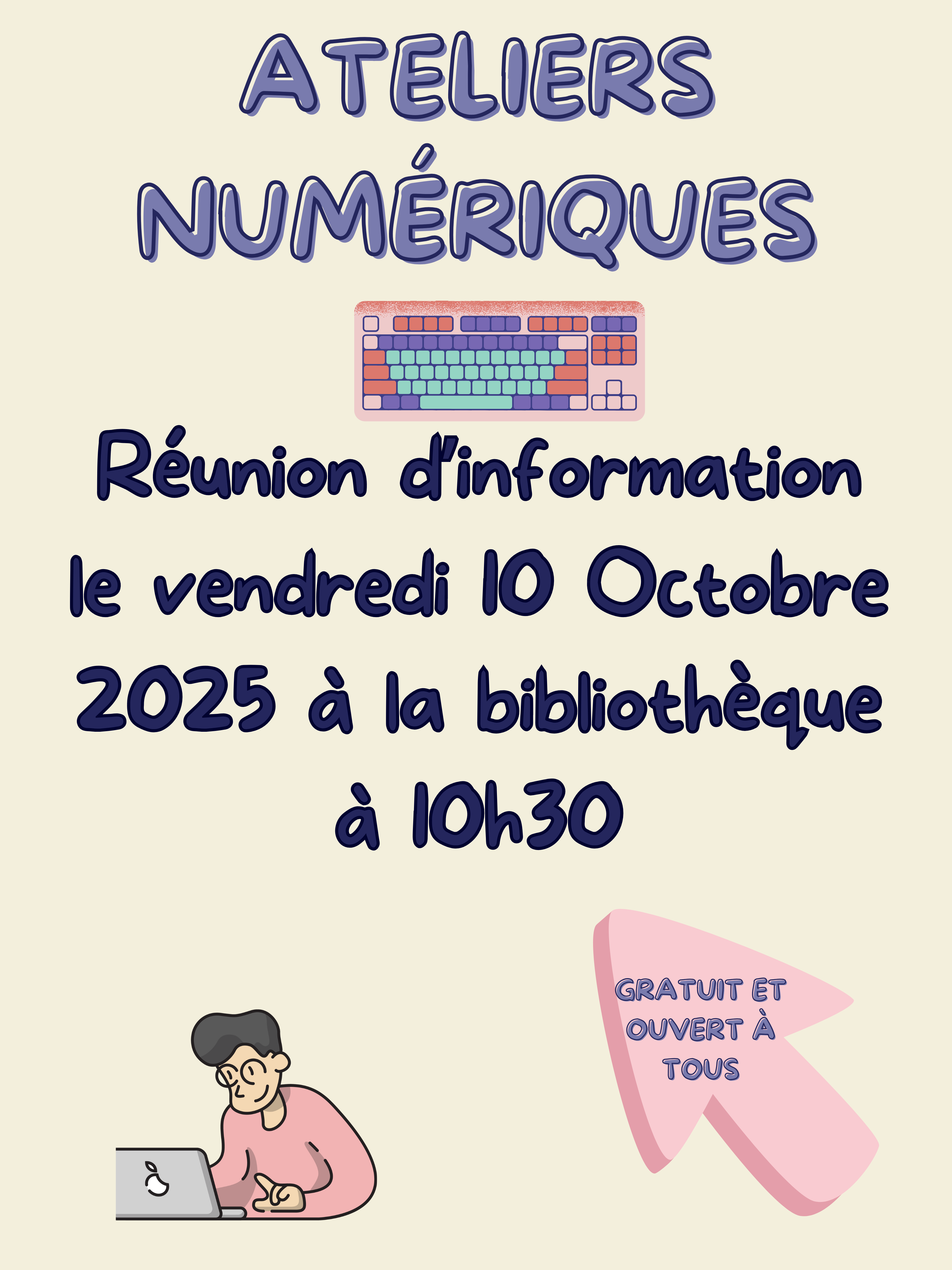 Réunion d'information concernant les ateliers numériques 2025-2026Vendredi 10 Octobre à 10h30 à la bibliothèque