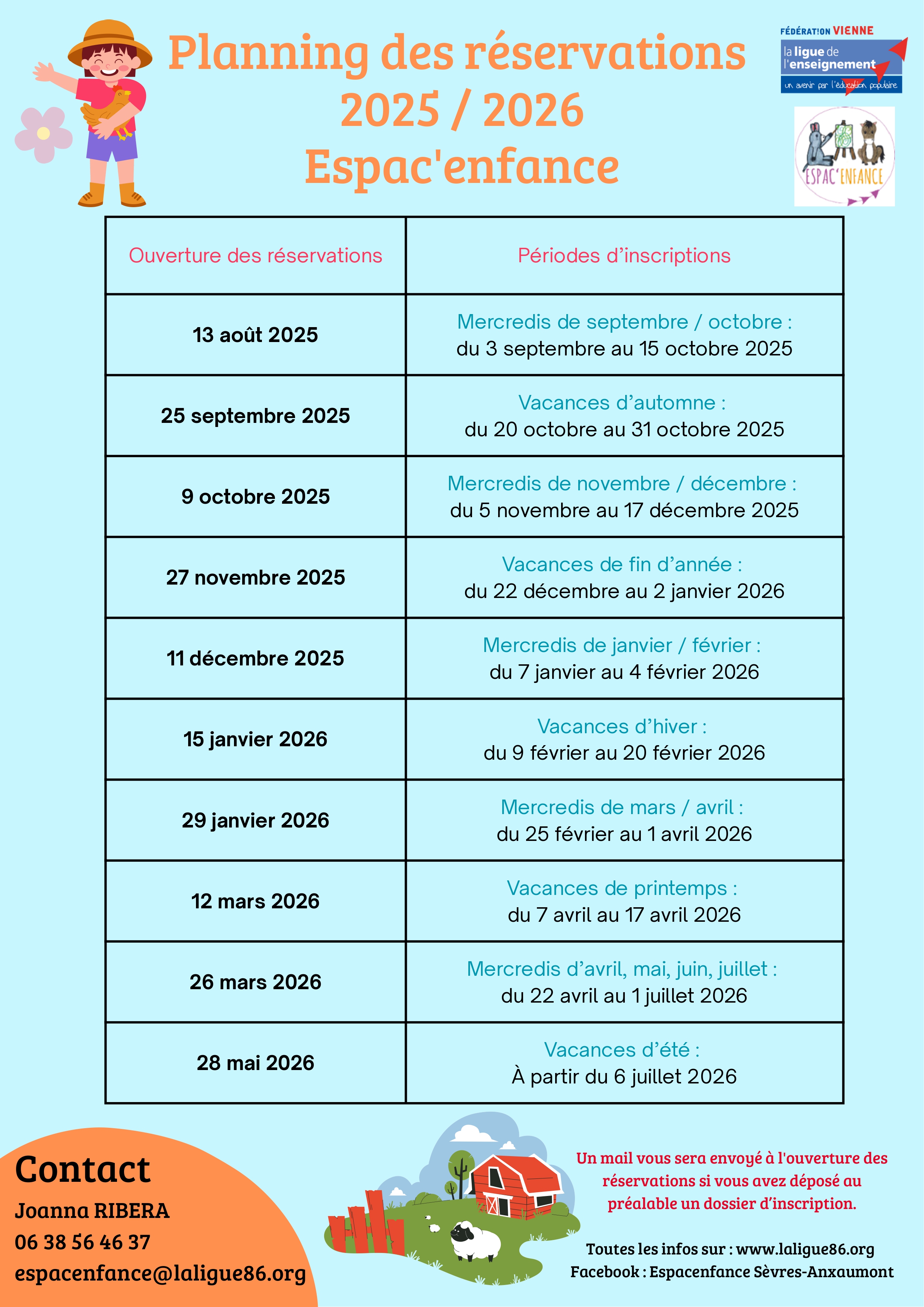 Planning des réservations 2025/2026 Espac'enfance